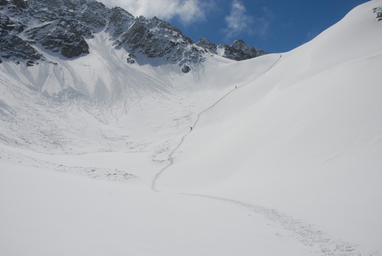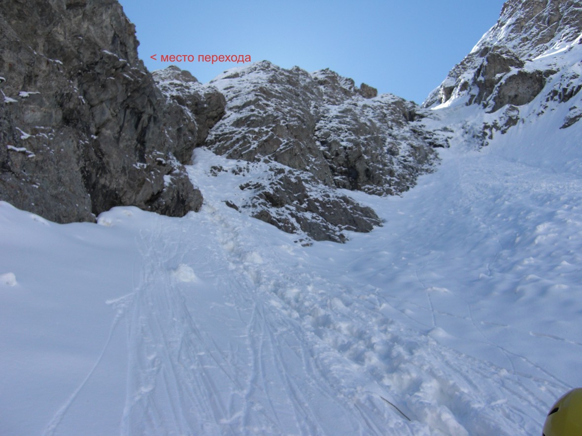 К сожалению, найти в Интернете и в библиотеке МГЦТК описаний этого района в межсезонье не удалось, зимних тоже не оказалось. Поэтому, при планировании маршрута и при его прохождении мы использовали летние описания, воспользоваться которыми удавалось не всегда. На отдельных участках маршрута приходилось выбирать более трудоемкий, длинный путь, дабы обойти участки с повышенной лавинной опасностью, на которых летом есть тропа.