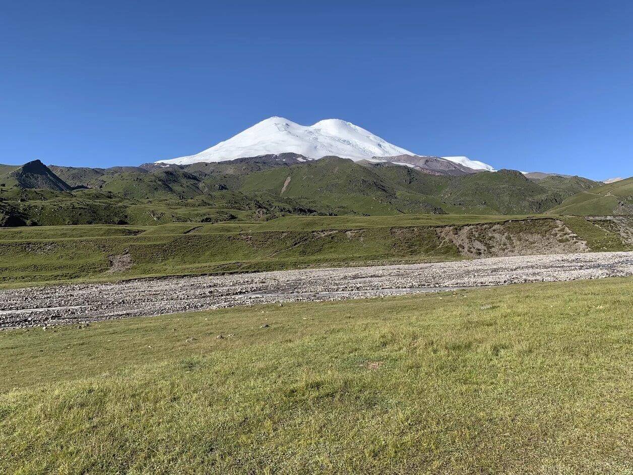 Фото 6.3 Вид на пер. Джикаугенкёз и ( 3520 м 1Б) и г. Эльбрус со стороны д.р. Субаши