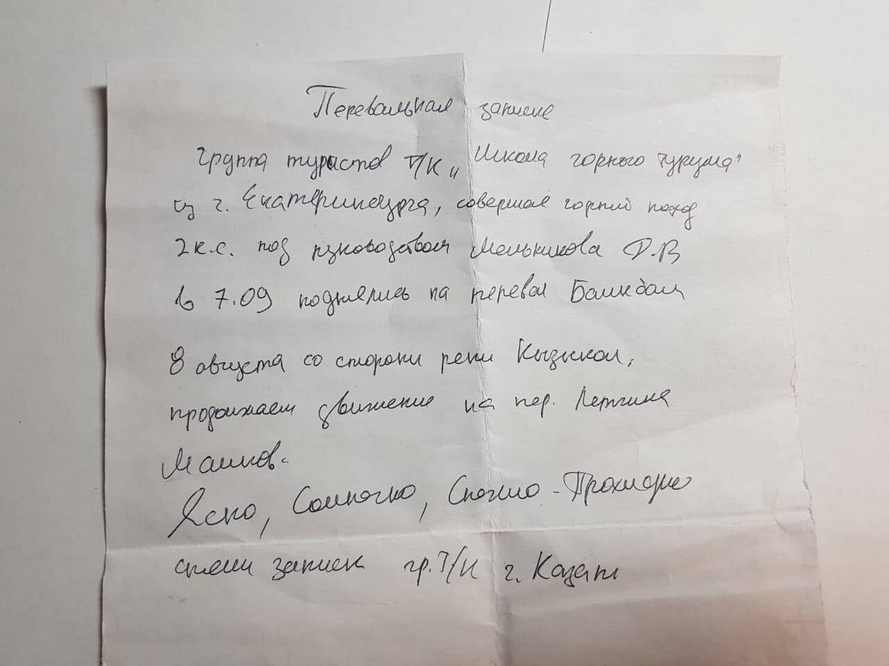 Фото П-2.14 - Записка с пер. Рыжие Скалы н/к