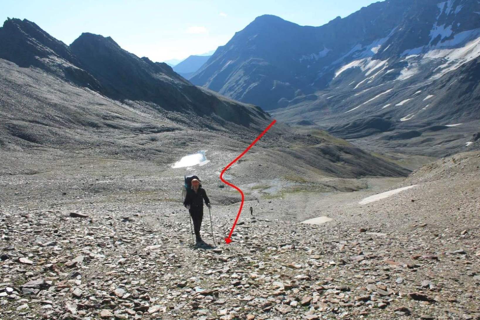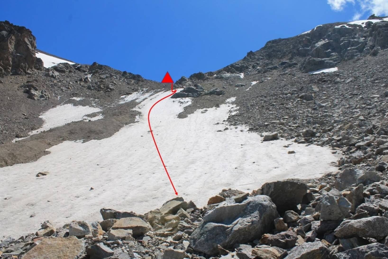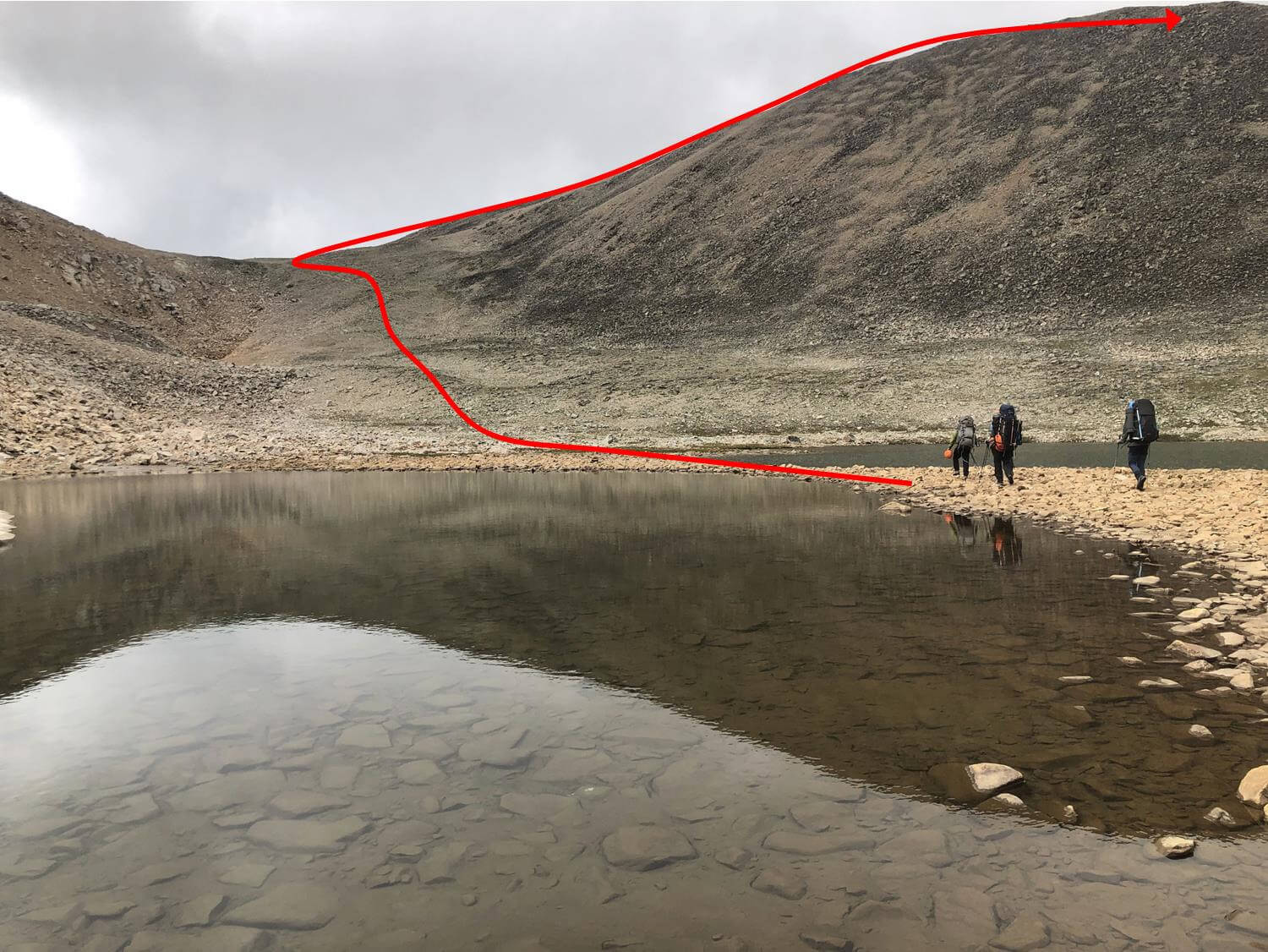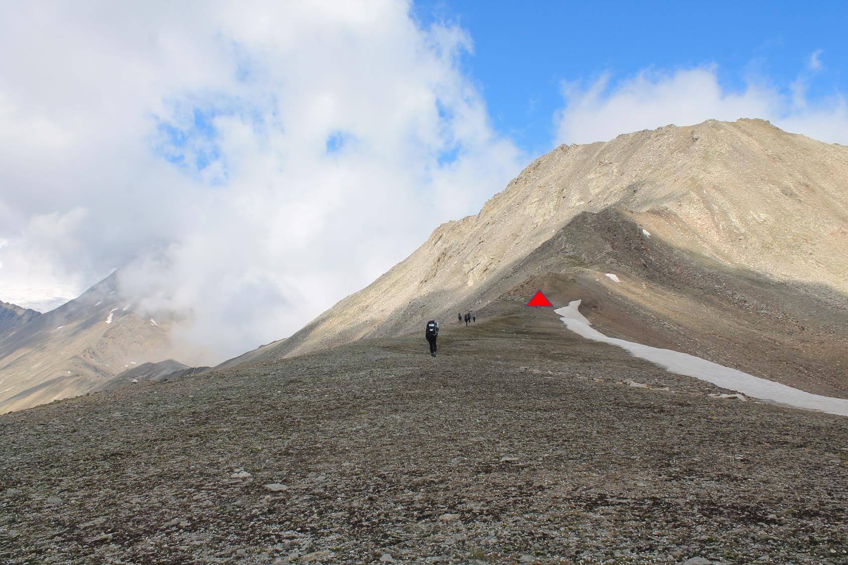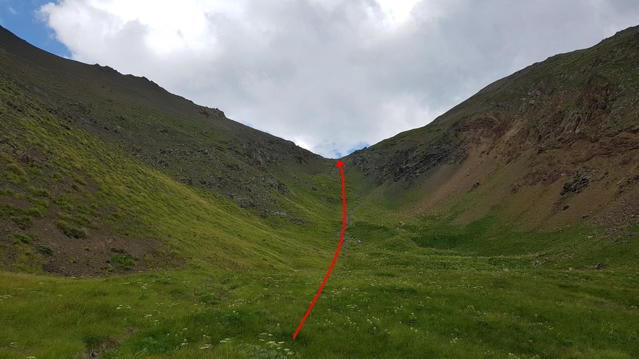 Фото 9.1 Путь подъёма на пер. ЭКТ ( 3500 м, 1Б) со стороны д.р Уллу-Кам.