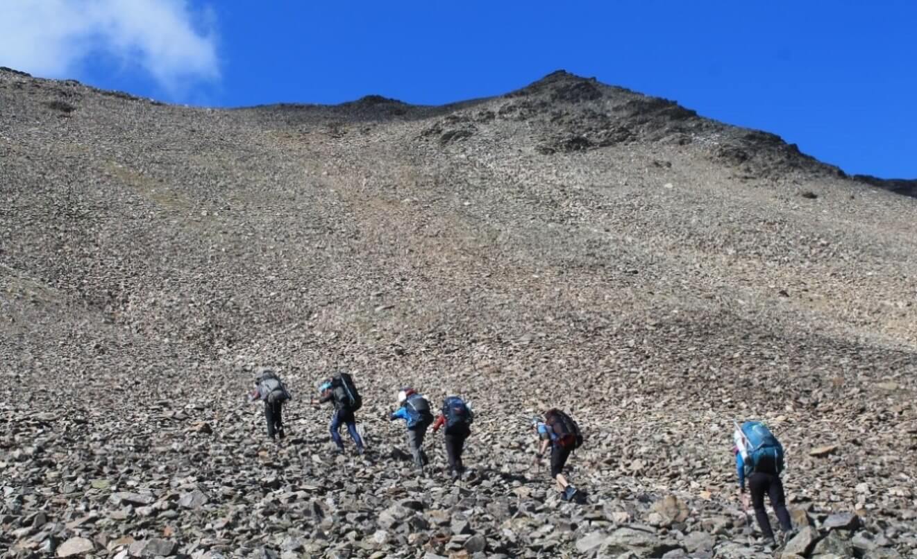 Фото 5.2 Подъём на гребень плотной группой к перевалу Суарыкауш (3527 м, 1Б)