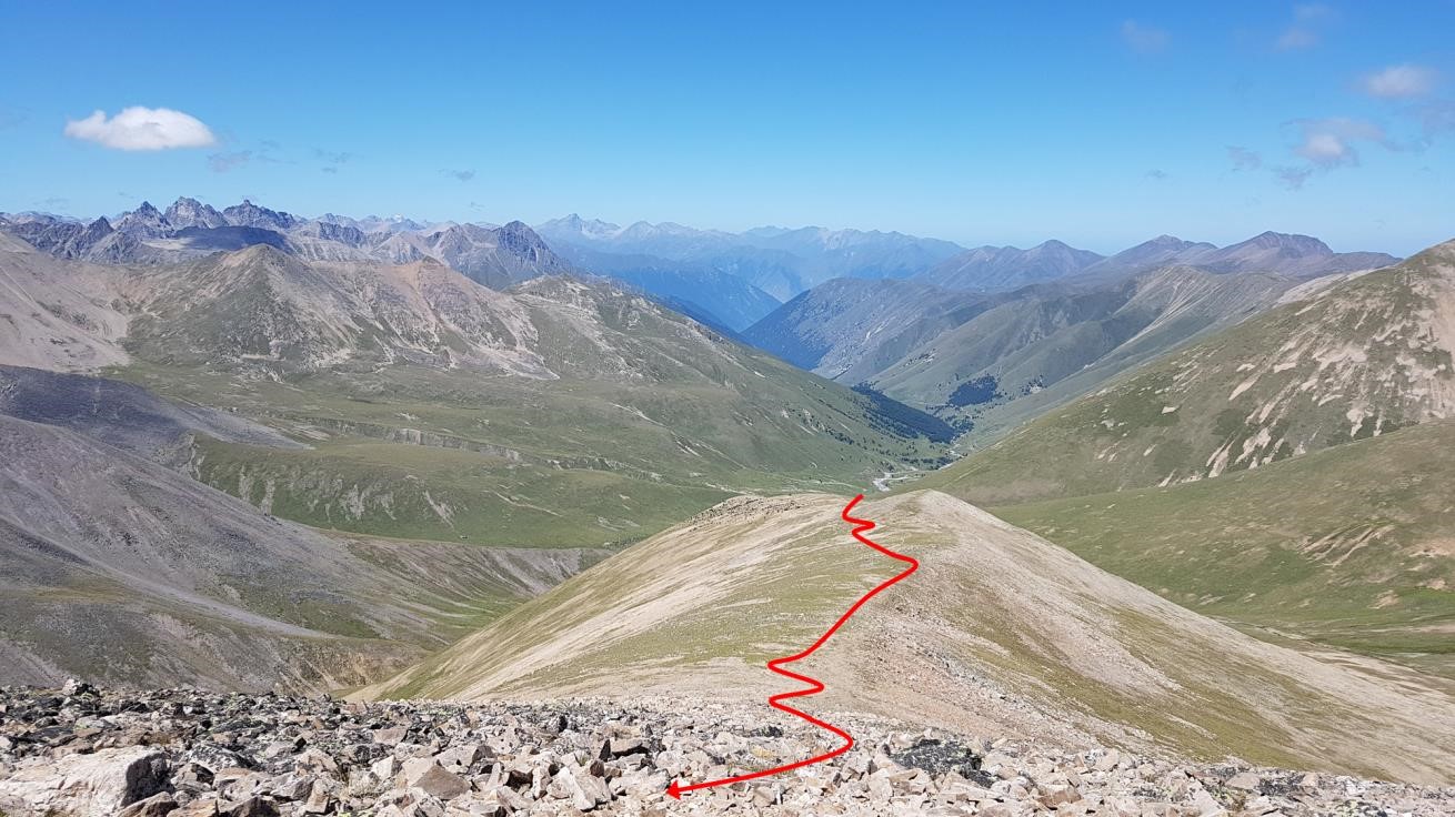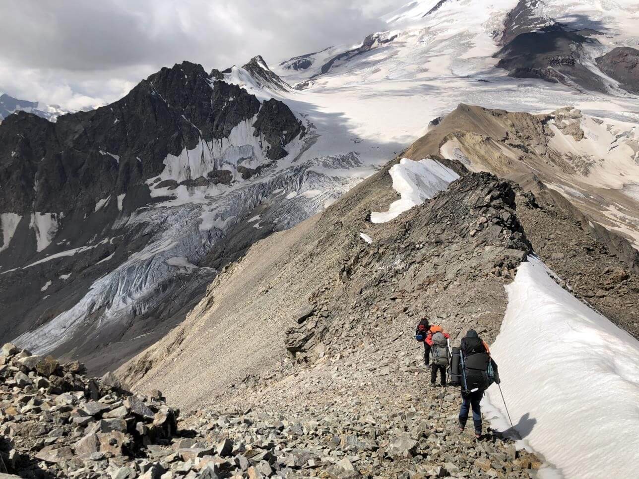 Фото 5.3 Движение по гребню на перевал Суарыкауш (3527 м, 1Б)
