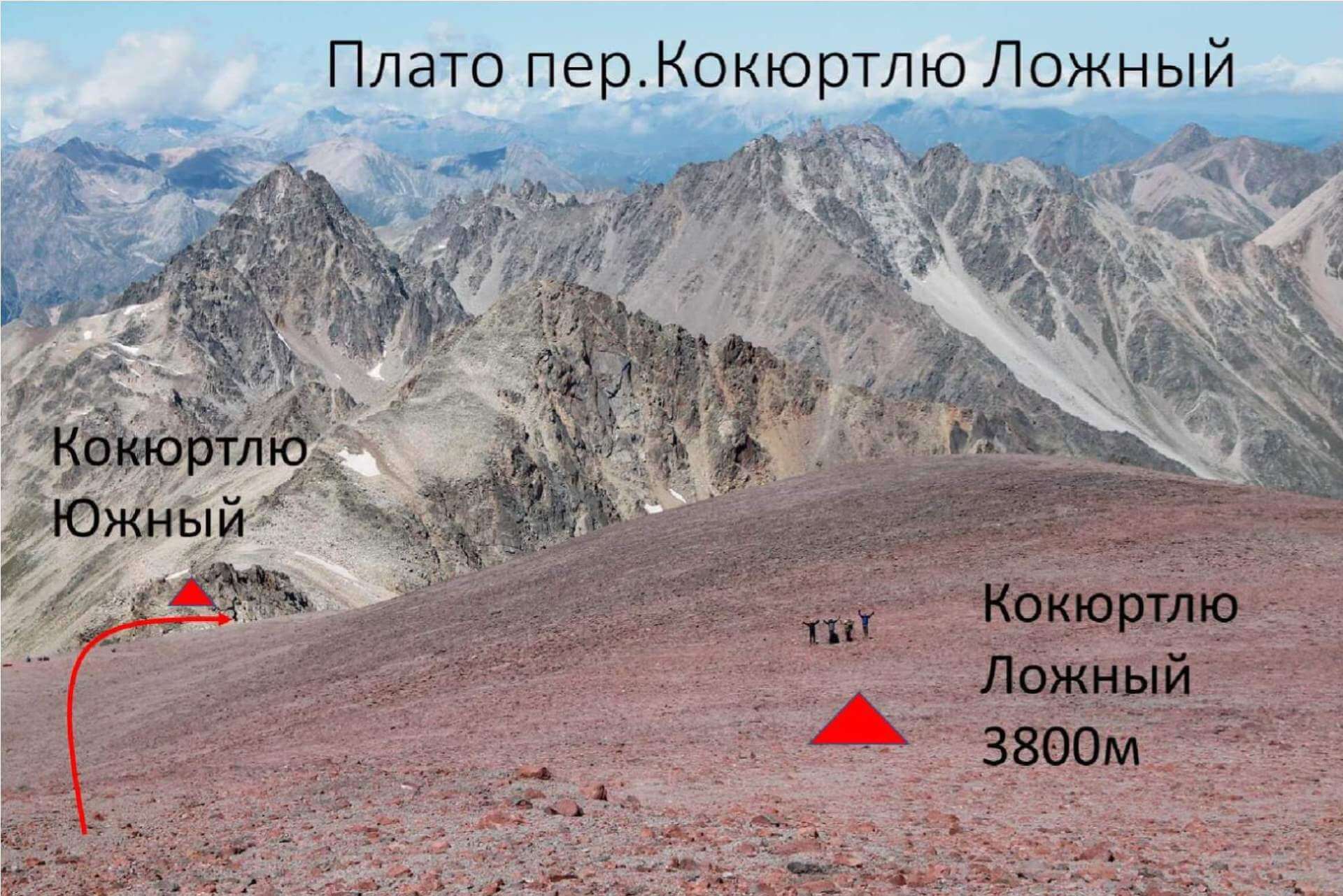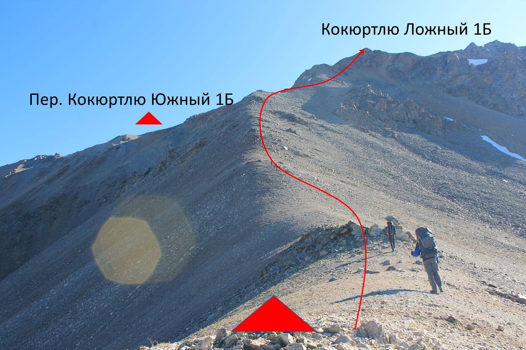 Фото 5.1 Схема подъёма на перевал Суарыкауш (3527 м, 1Б) со стороны д.р Уллусенчи.