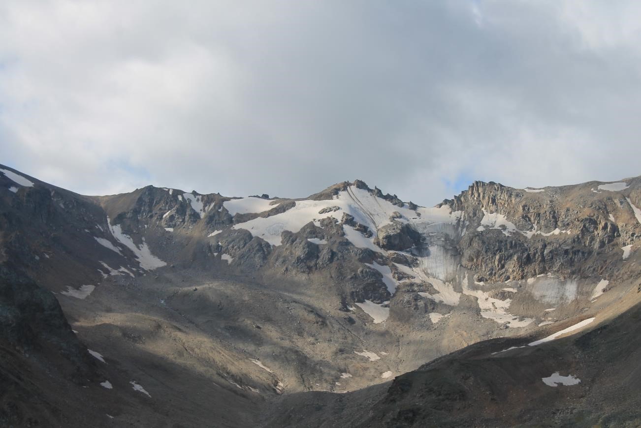Фото 4.1 Вид на Кыртык Верхний ( 3399 м, 1Б) со стороны пер. взлёта пер. Кыртык Нижний (3143 м, 1А)