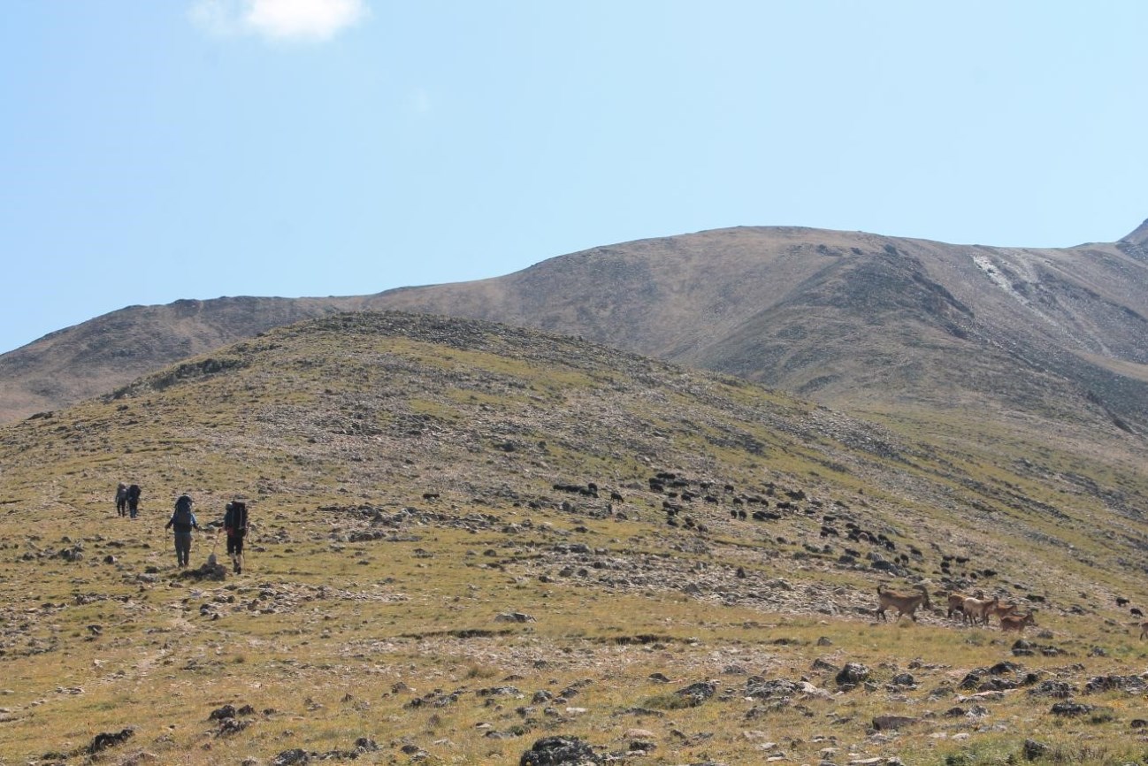 Фото 6.14 Движение группы на в. Рыжий Бугор, 3762 м, с пер. Ирикчат